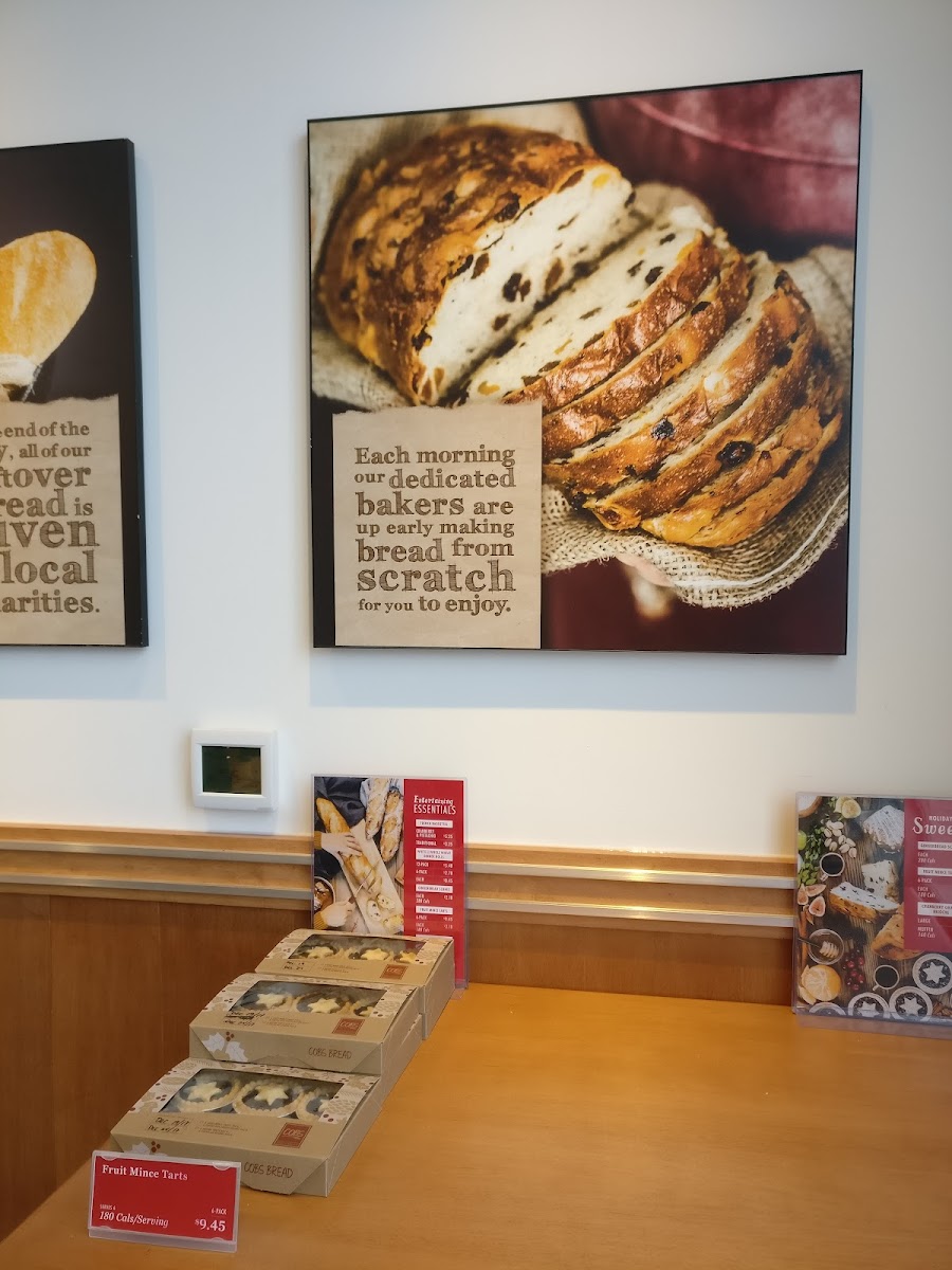 The bakery section includes a selection of breads, buns, and rolls such as plain and sesame seed bagels, all made fresh daily on-site. These items can be enjoyed on their own or paired with spreads and toppings.